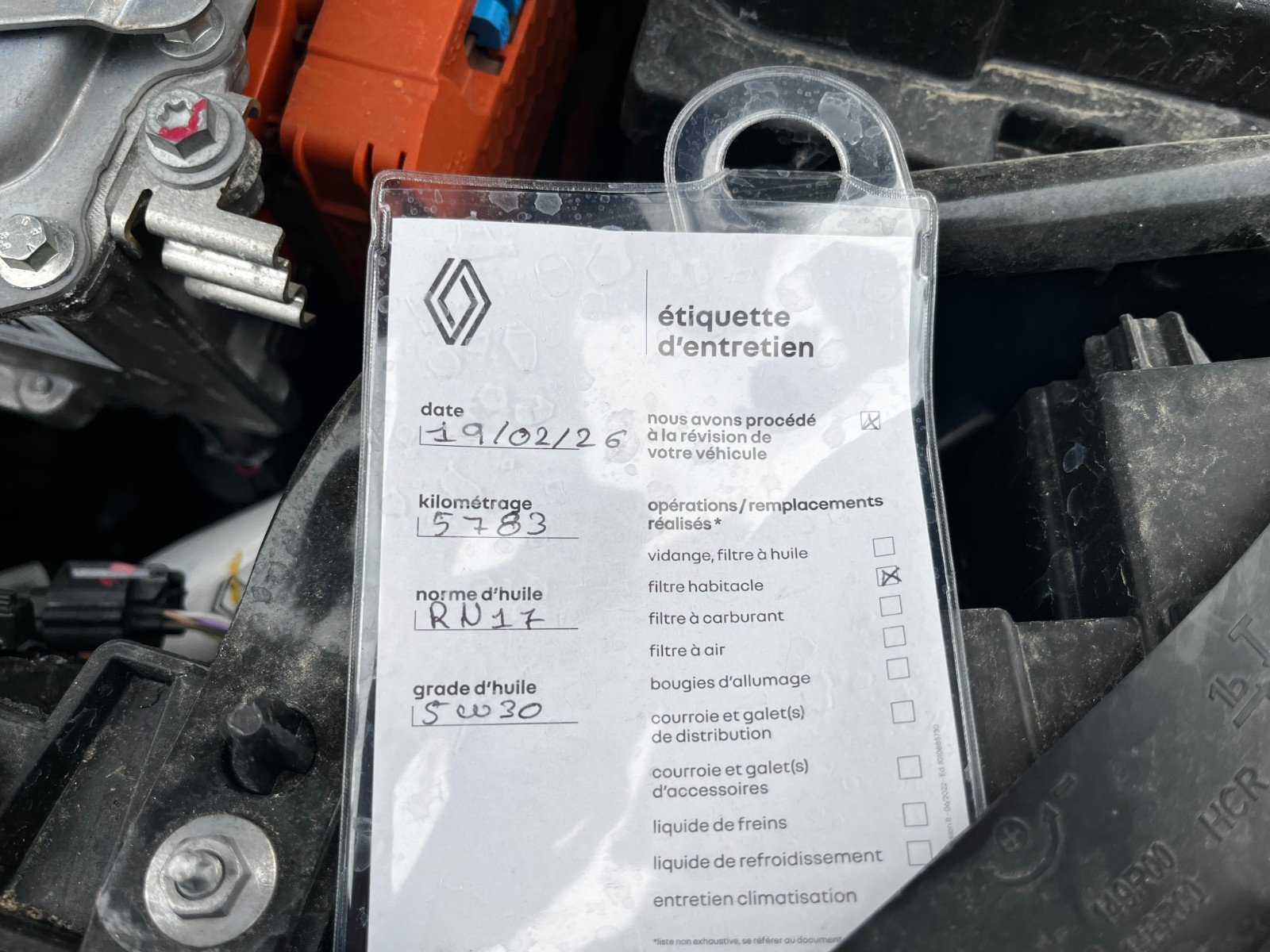 - Carnet d'entretien : Présent